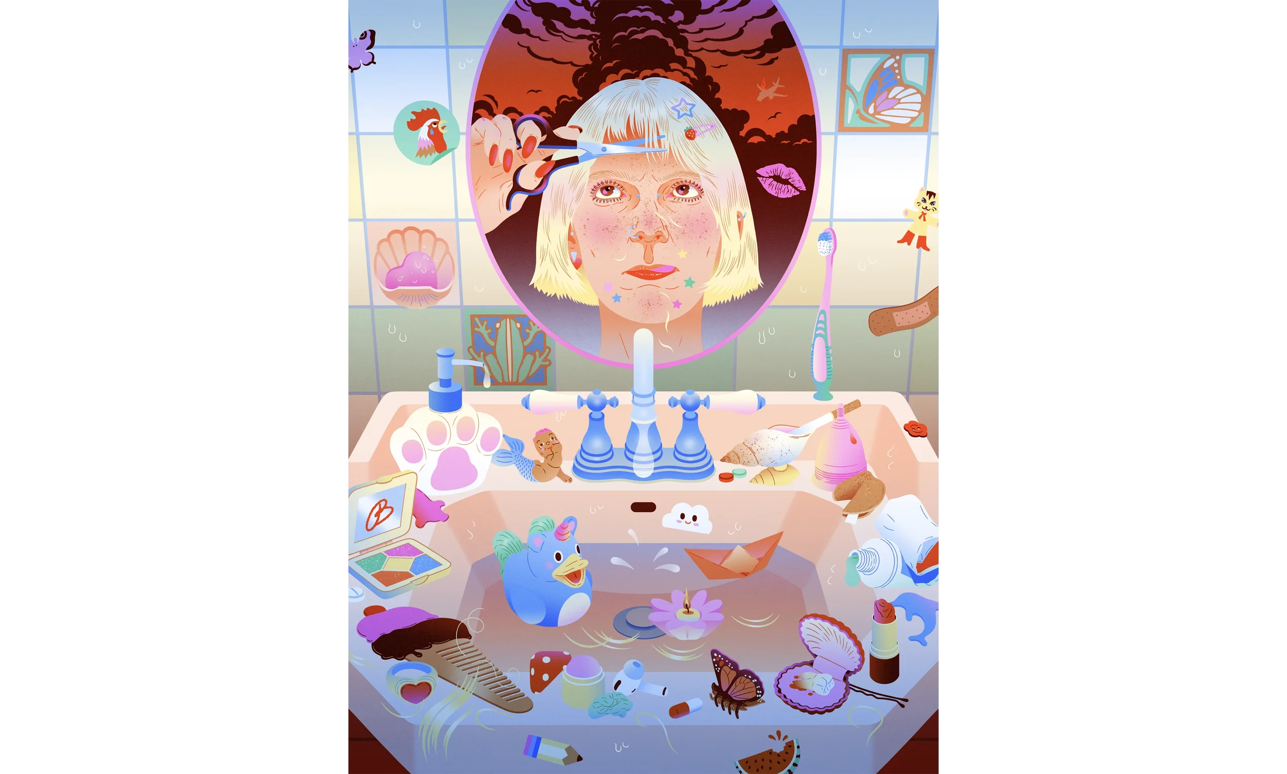 Cover illustration for Brillo Magazine titled The Change, reflecting on the uncertain times we live in and the coping mechanisms we engage in to sooth ourself into normalcy.