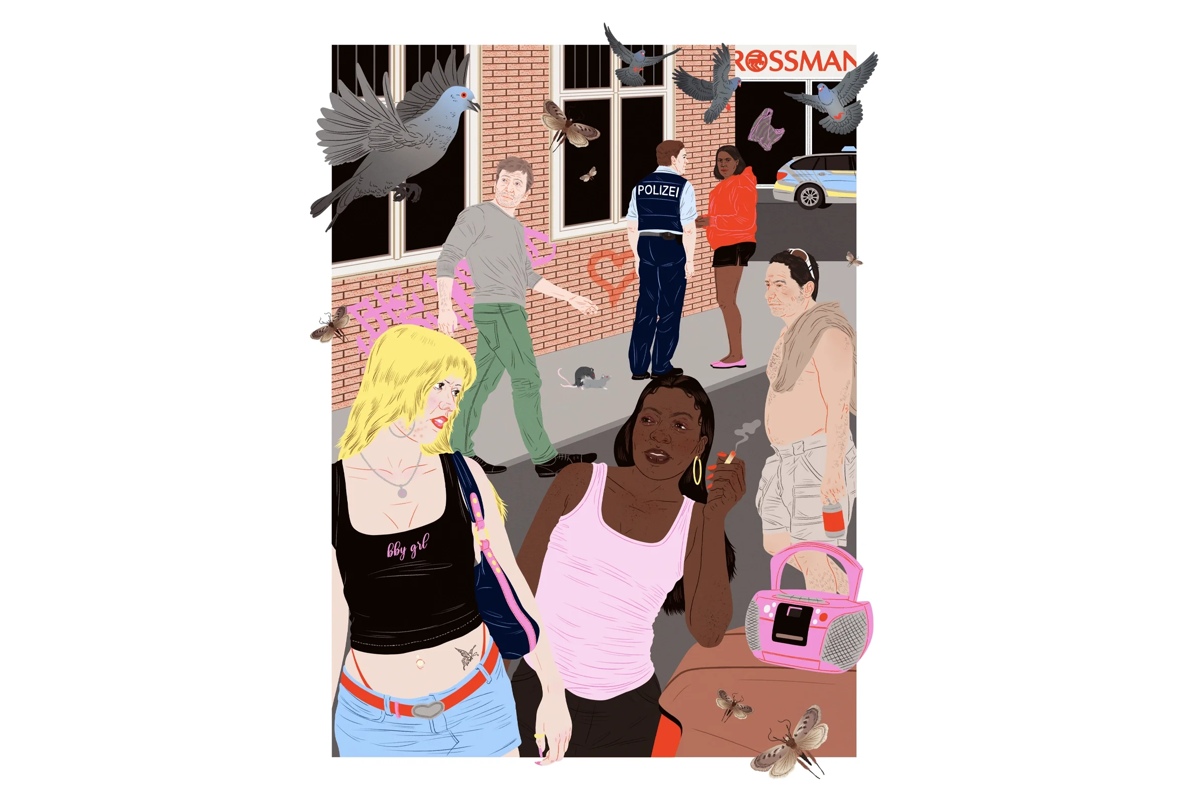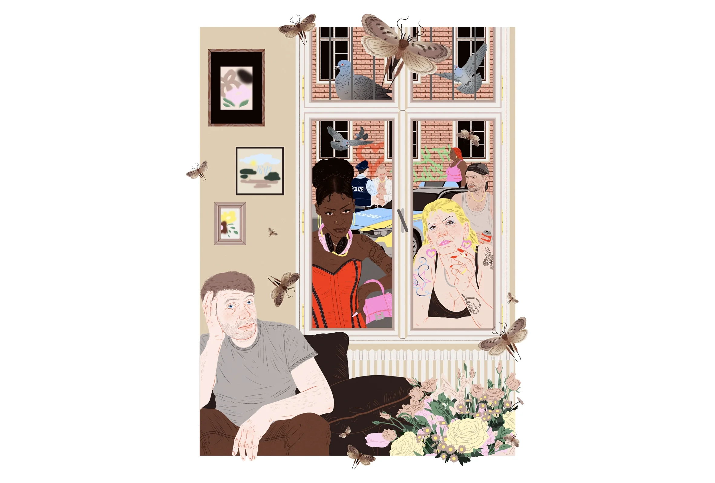 Editorial illustrations for the Die Zeit article ‘The Miracle Flat,’ investigating the case of a seemingly perfect Berlin apartment that turns out to be too good to be true. The brief was to create a series of illustrations visualising different aspects of the story, from an unexpected moth invasion to a clandestine red-light district slowly seeping into the lives of the flat’s occupants.