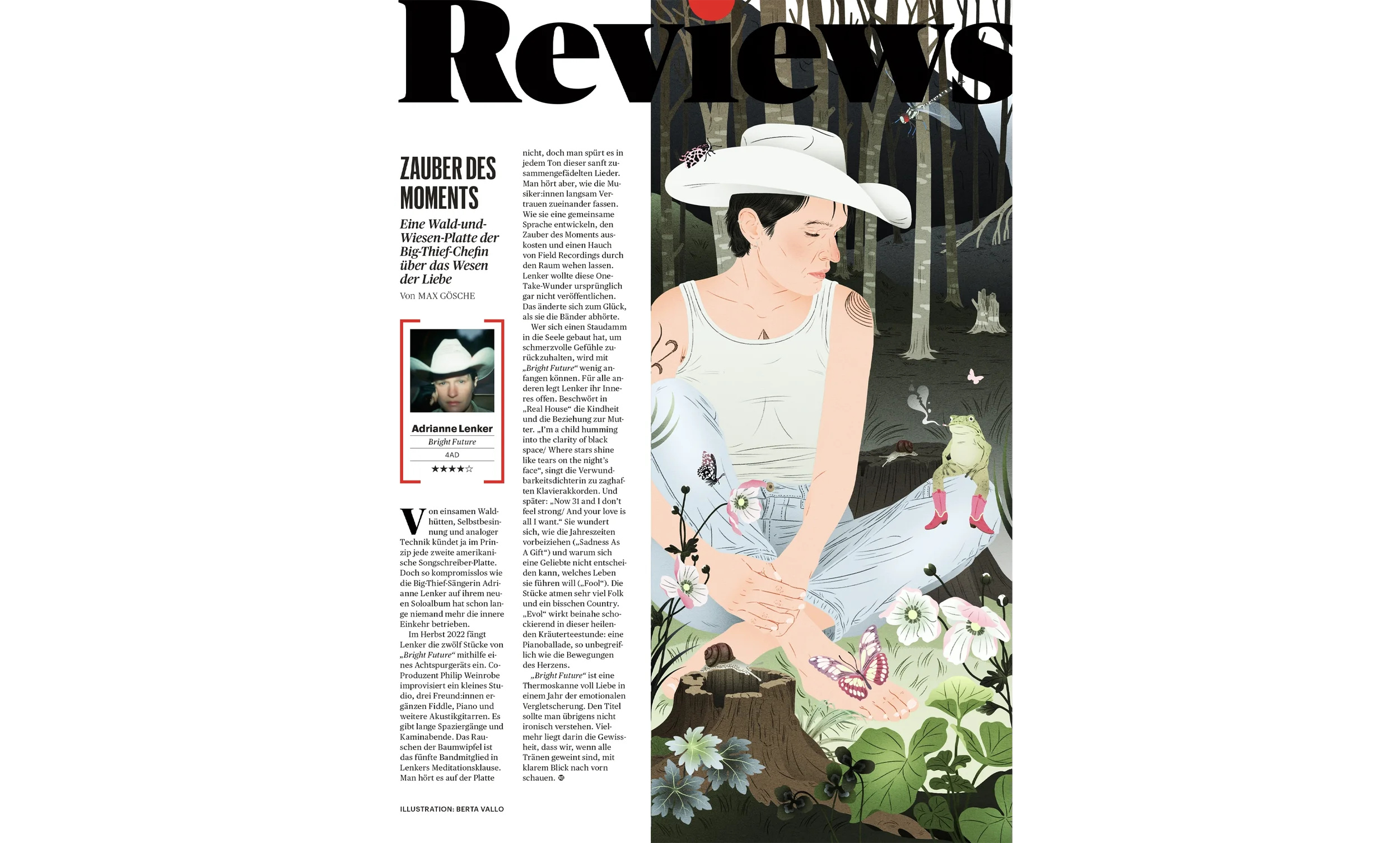 Editorial illustration for Rolling Stone Deutcheland’s review of Adrianne Lenker’s 2024 album, Bright Future.